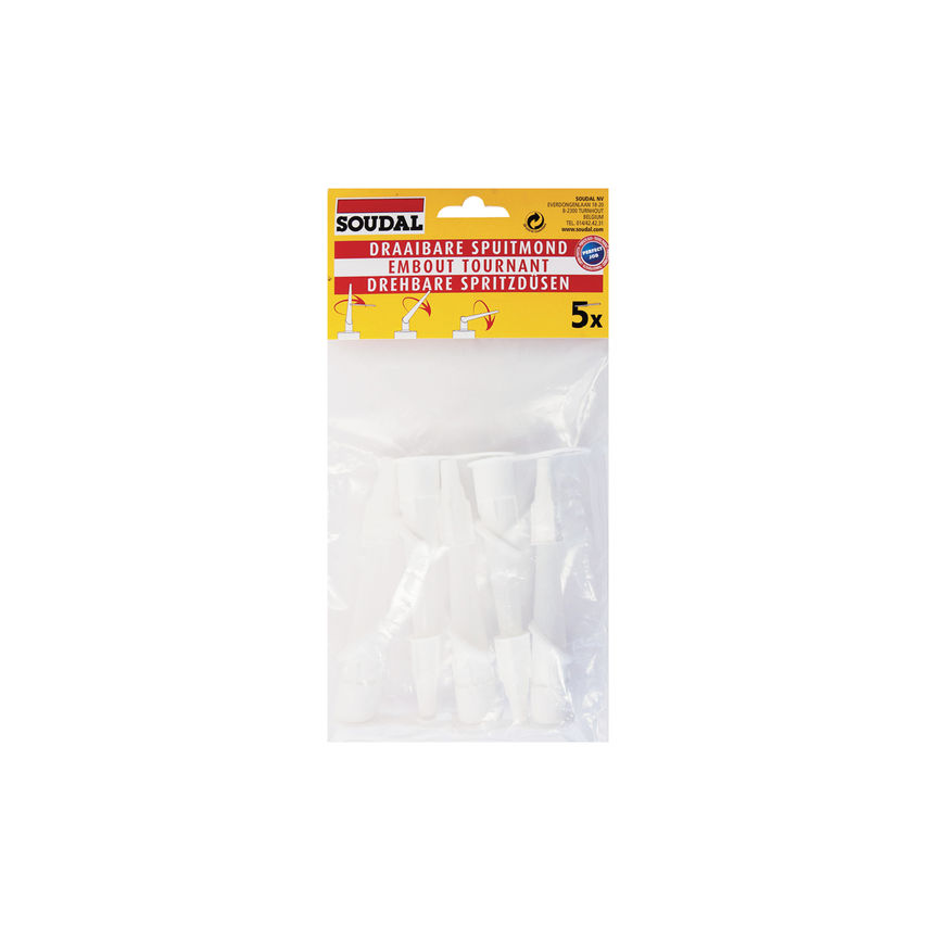 Pack of 5 ‘twist’ nozzles. Adjustable nozzles suitable for standard cartridge products. The swivelling nozzle can accommodate a wide variety of angles.